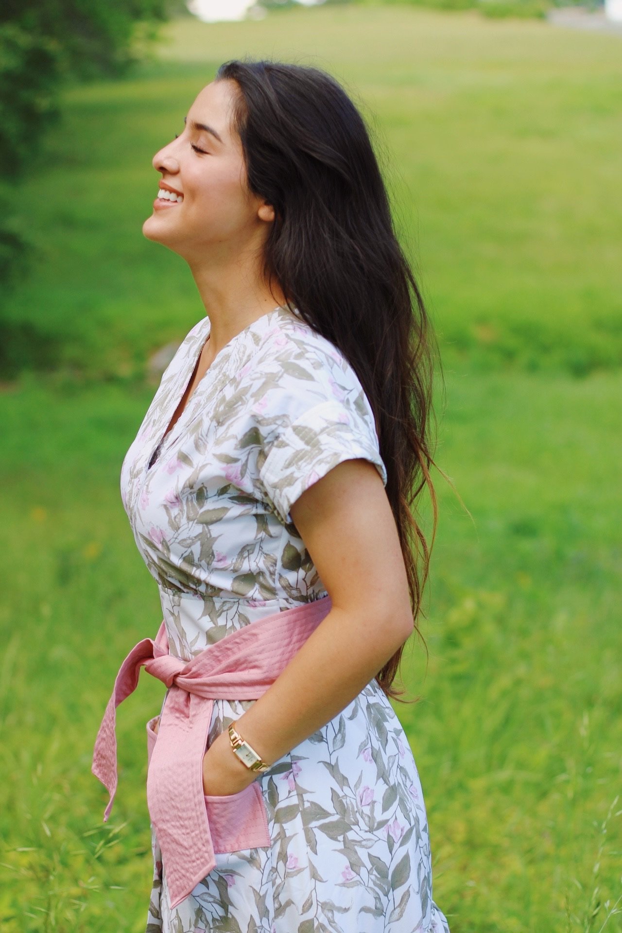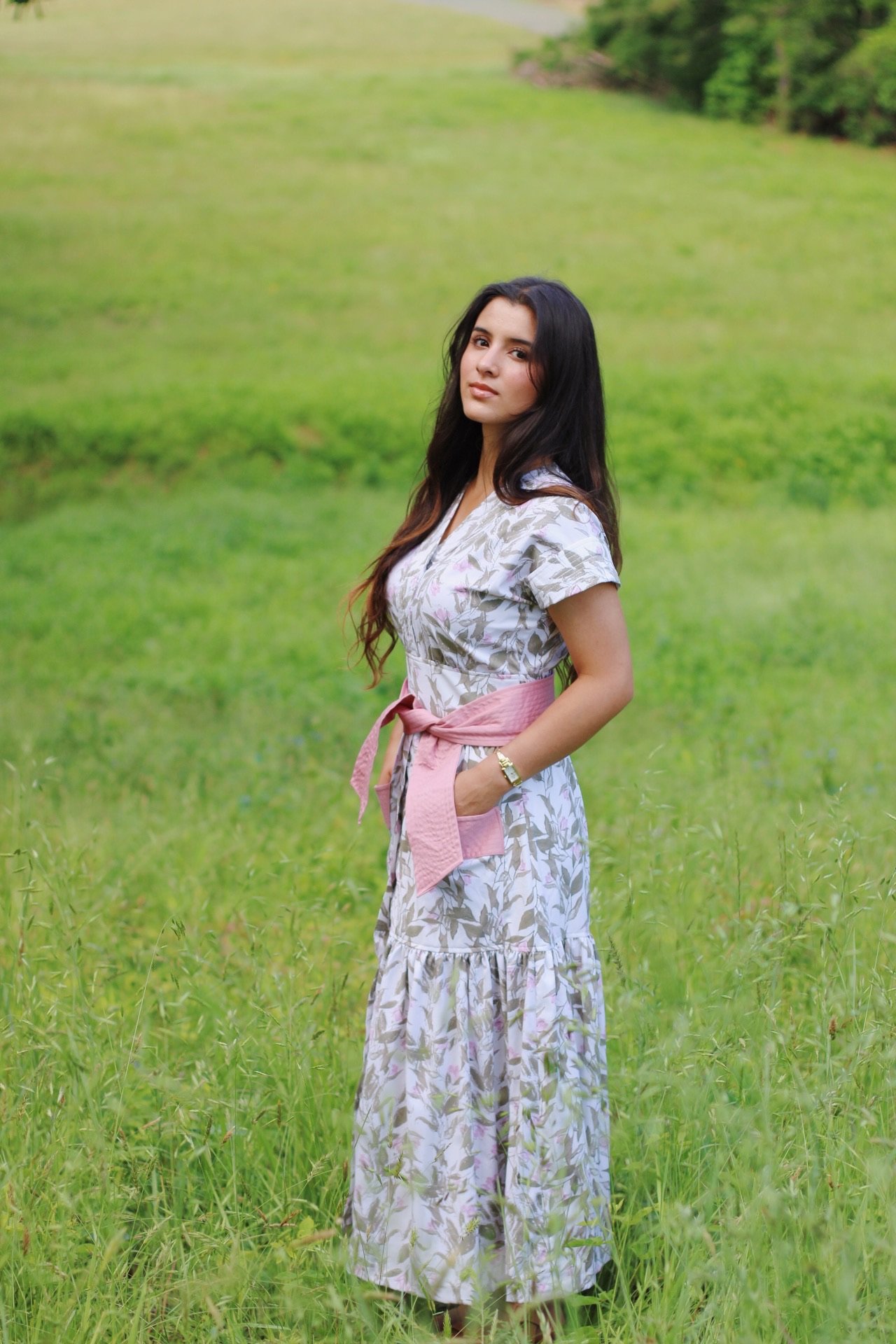 This flowy linen dress is designed with timeless femininity in mind. It features soft puffy sleeves, delicate button accents along the front, and a tie-back bow that adds an elegant finish. The lightweight linen-olán fabric showcases a pastel floral print, offering both comfort and grace. Perfect for warm days, it combines a relaxed silhouette with thoughtful details that make it effortlessly beautiful.