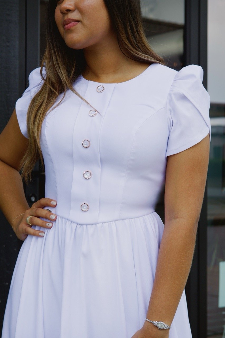This georgette dress combines elegance with everyday comfort. The lightweight fabric drapes beautifully, while the puffed sleeves and gathered skirt add a soft, feminine touch. A row of pearl-accented buttons brings subtle sophistication, making it perfect for both casual gatherings and special occasions. Timeless and versatile, this dress is designed to be worn effortlessly from day to night.