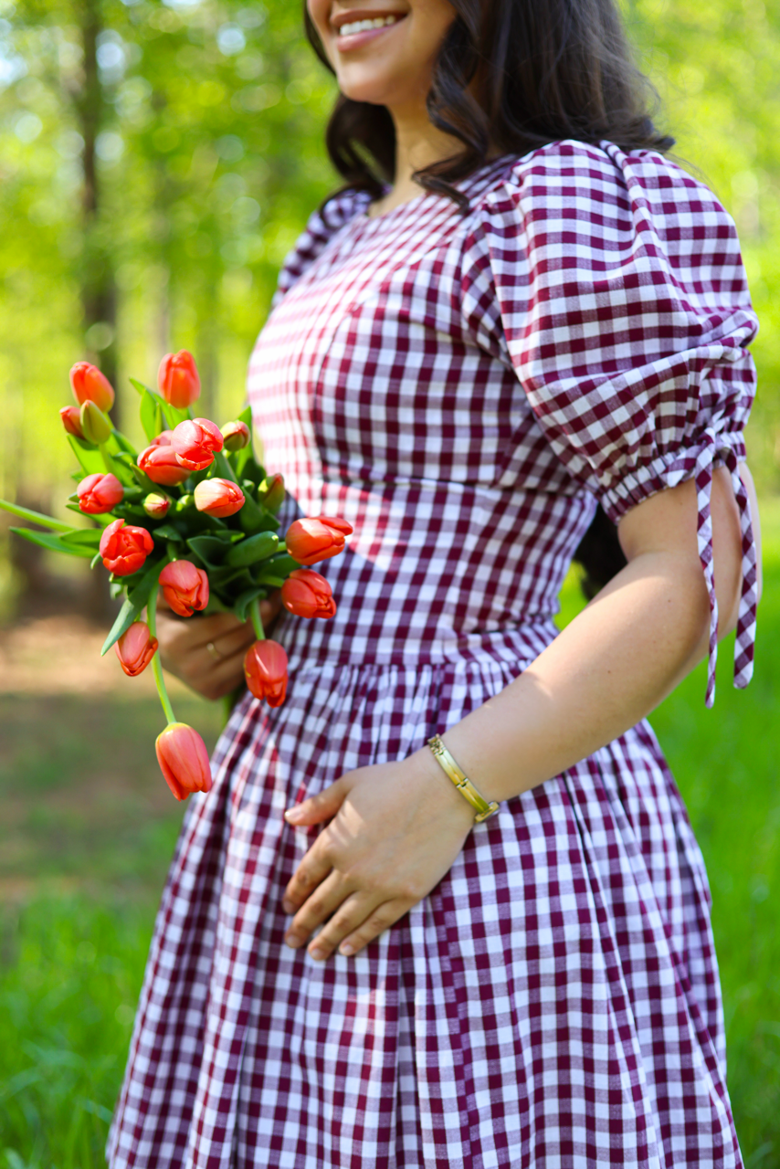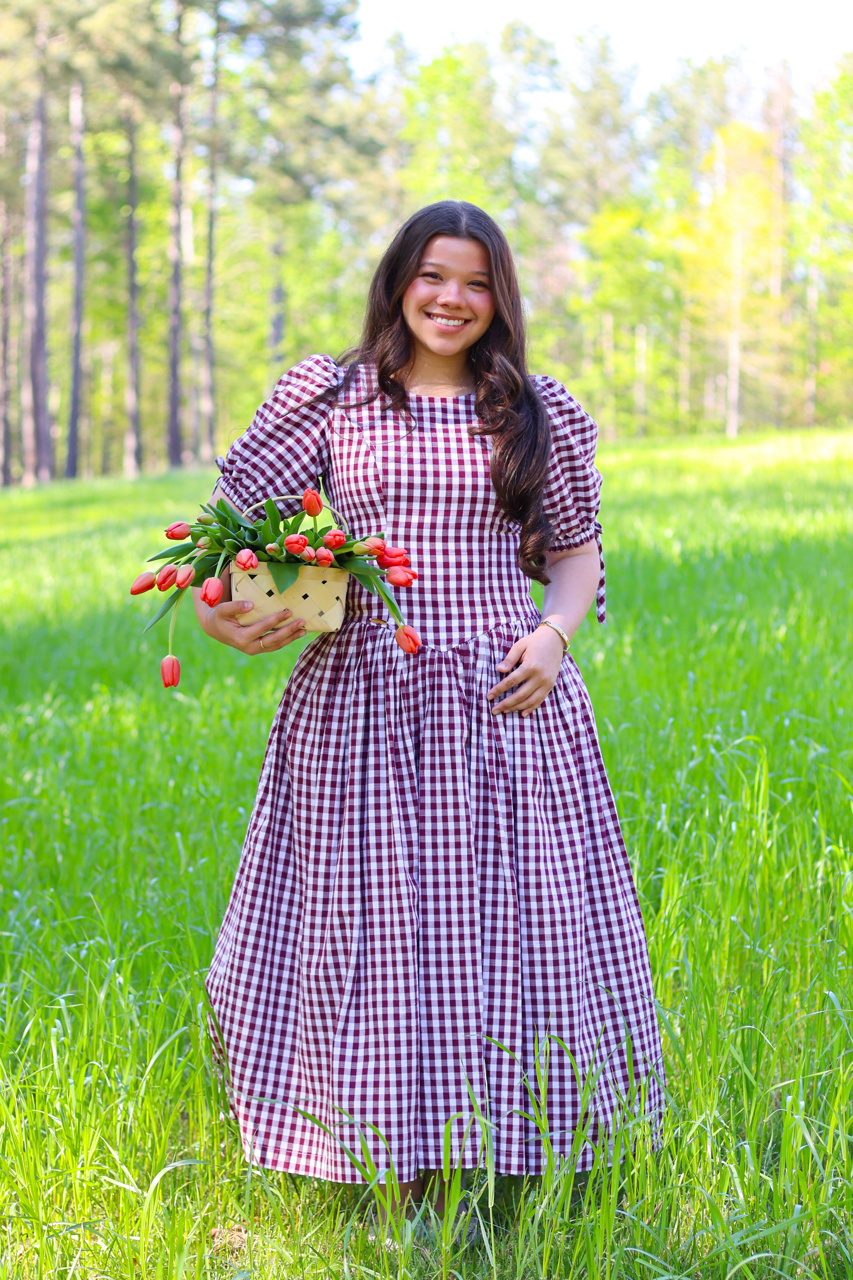 A classic gingham dress with puff sleeves and a flattering fitted waist. Light, comfortable, and perfect for everyday wear or sunny outings